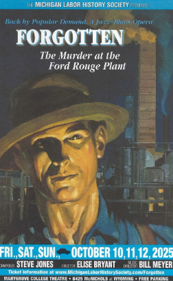 The Michigan Labor History Society is holding open auditions for the jazz opera FORGOTTEN: The Murder at the Ford Rouge Plant. Performance dates are October 10-12, 2025 at the Marygrove Theater in Detroit, Michigan.